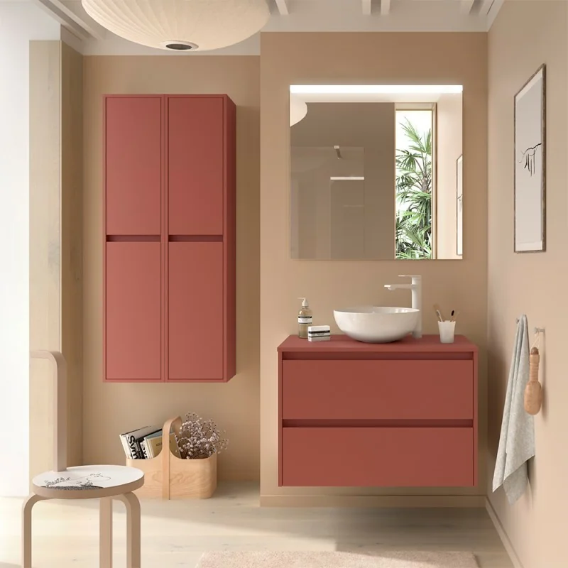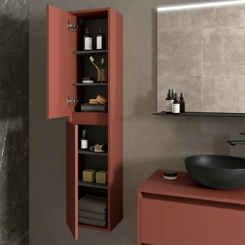 Colonna bagno sospesa 140 cm rosso satinato ripiani regolabili Gaya