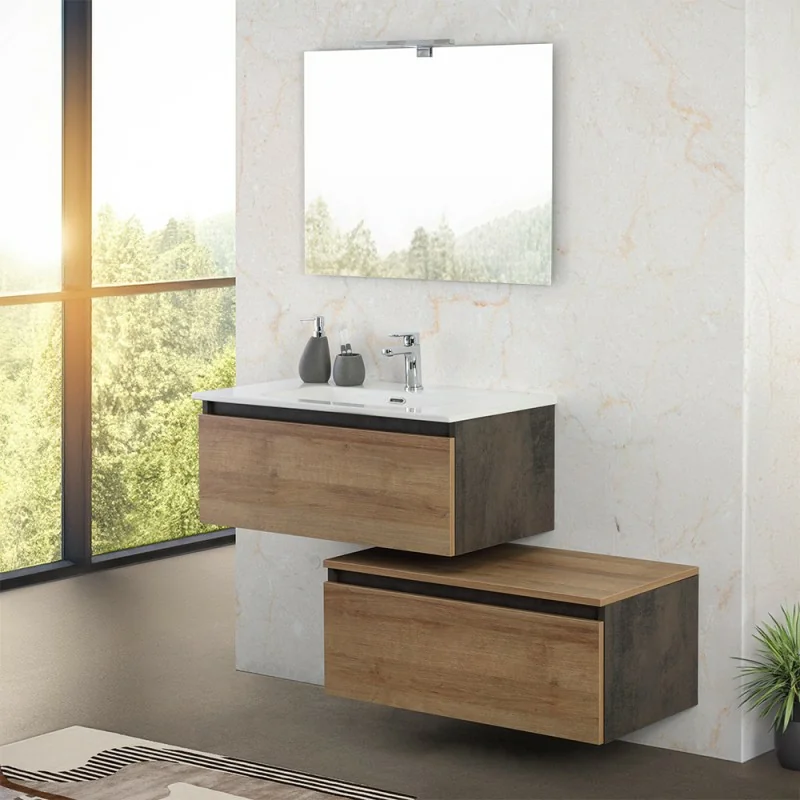 Cassettone bagno sospeso 80 cm soft-close ossido e rovere africa Kleo