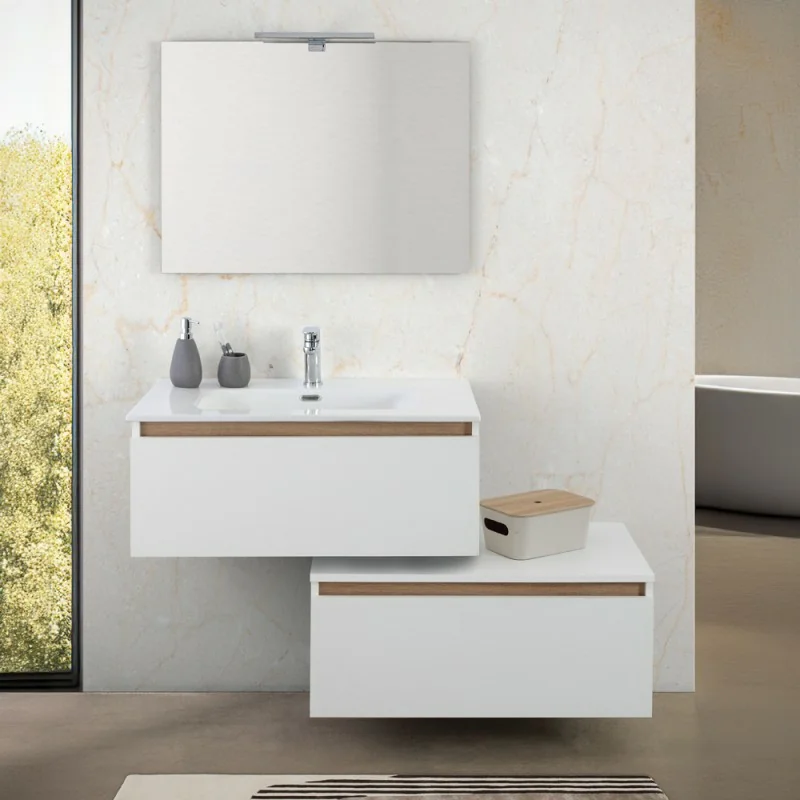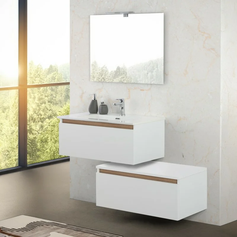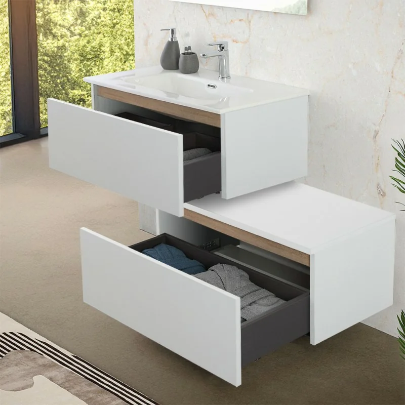 Cassettone bagno sospeso 80 cm soft-close bianco e rovere africa Kleo