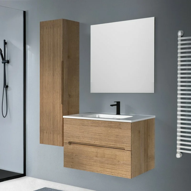 Le colonne bagno sospese della serie Rigo evincono per il loro design elegante e avvincente, caratterizzate da un'anta cannettata a funzionalità avanzata, grazie alla chiusura soft close, all’apertura a gola e ai pratici ripiani interni. La sua struttura sospesa ottimizza lo spazio e facilita la pulizia, mentre l'estetica moderna aggiunge un tocco di eleganza al tuo bagno.