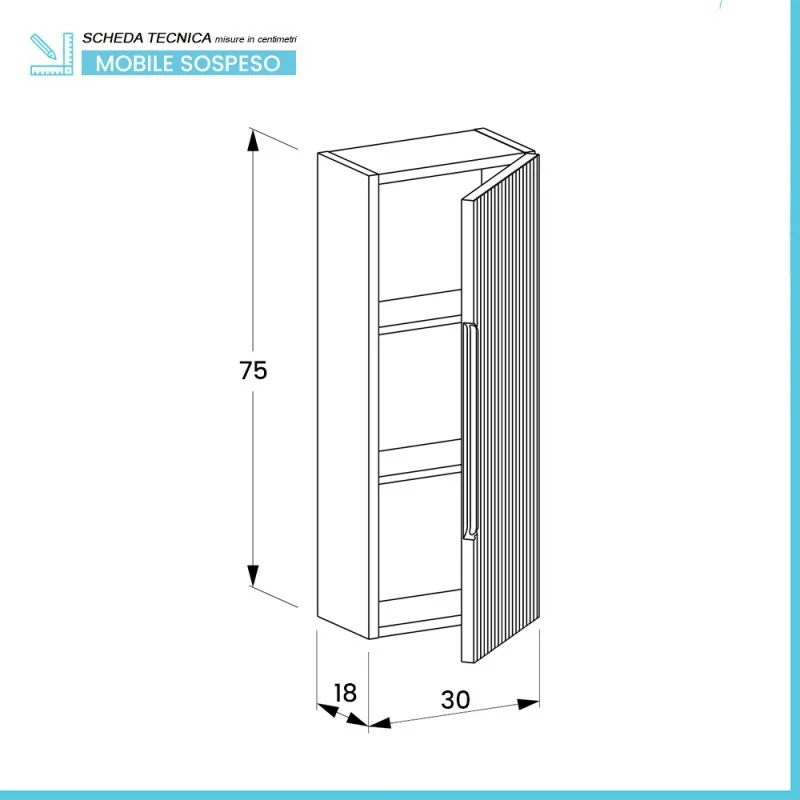 Pensile bagno sospeso 30 cm bianco opaco cannettato reversibile Rigo Anta aperta Pensile bagno sospeso 30 cm bianco opaco cannettato reversibile Rigo Scheda tecnica Pensile bagno sospeso 30 cm bianco opaco cannettato reversibile Rigo