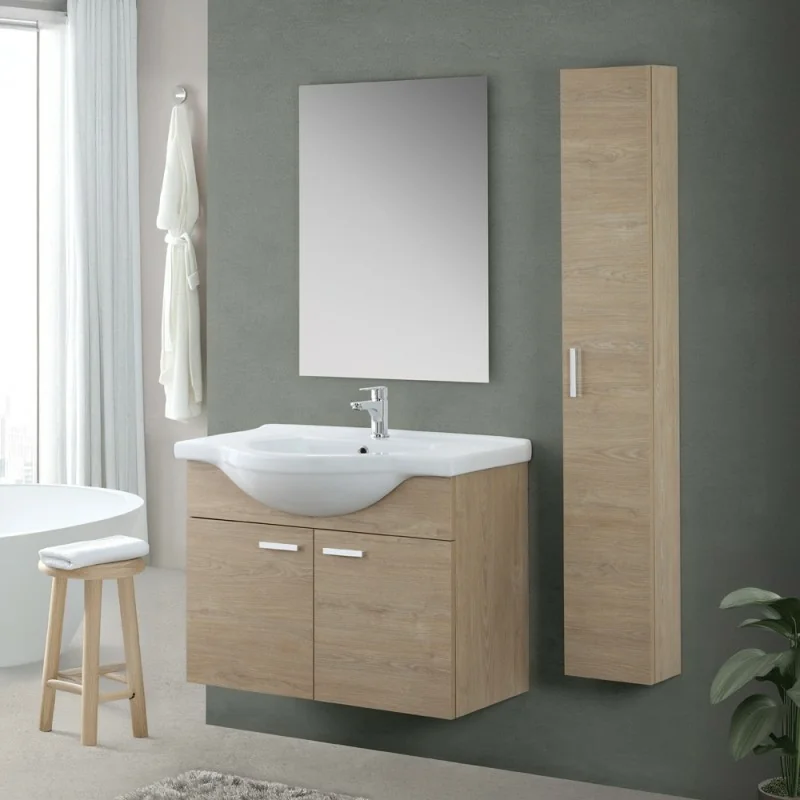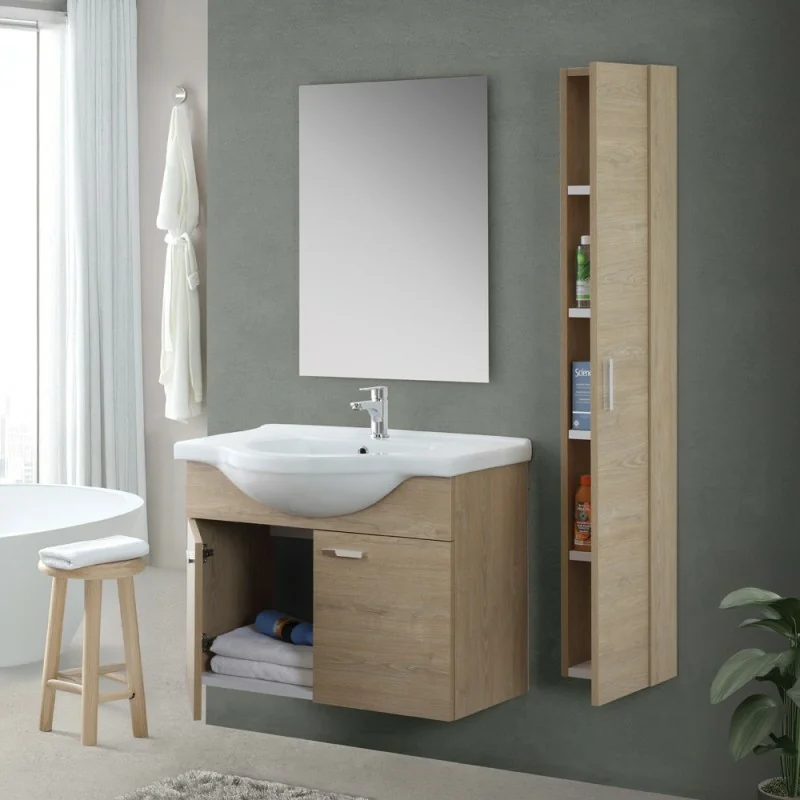 Colonna bagno in legno da installare sospesa con anta reversibile e ripiani interni fissi   La linea  Desya  offre una vasta gamma di...