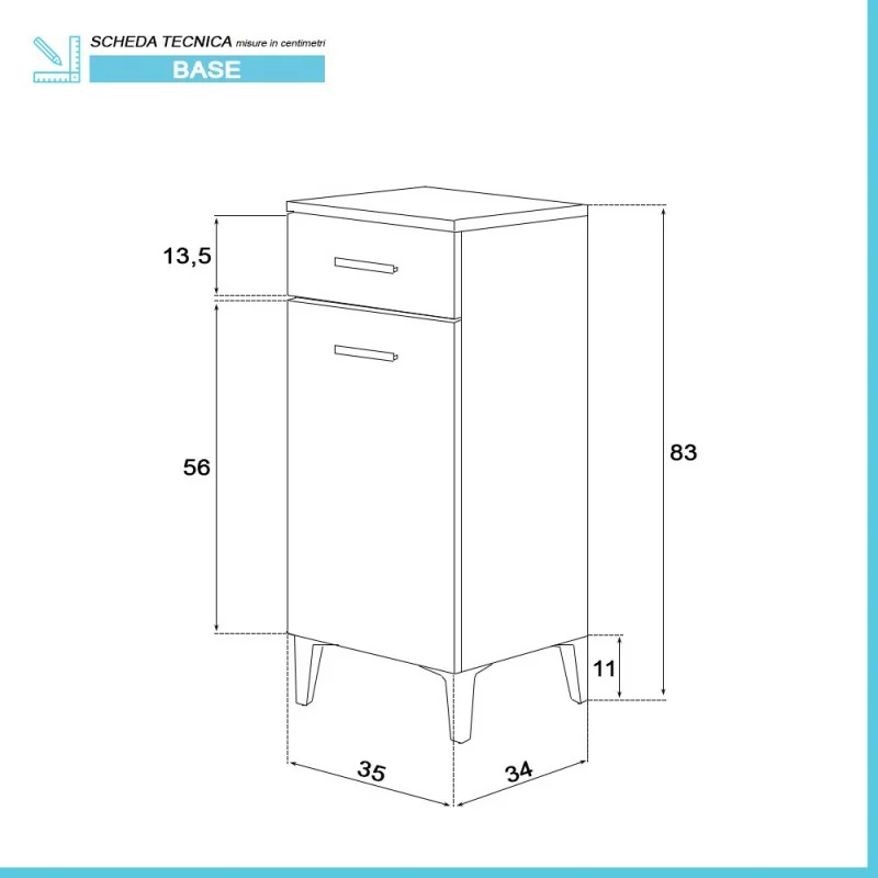 • Dimensioni: L 35 x p 34 x H 83 cm;