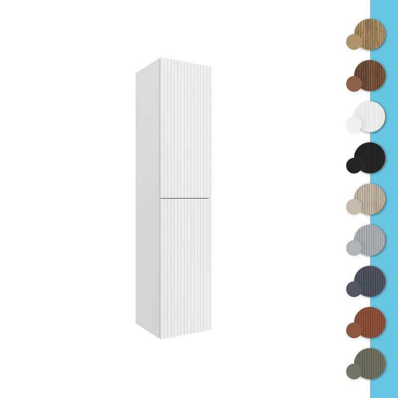 Questo pensile bagno sospeso da 160 cm in finitura blu notte cannettato offre un design elegante e sofisticato. Le sue linee verticali donano ritmo e armonia, mentre le ante reversibili con sistema di apertura push and pull nascondono con discrezione ripiani in cristallo regolabili, per un’organizzazione raffinata e funzionale.