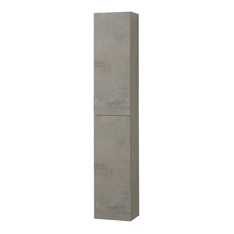 Colonna bagno sospesa H160 cm in legno grigio cemento con ripiani Leda