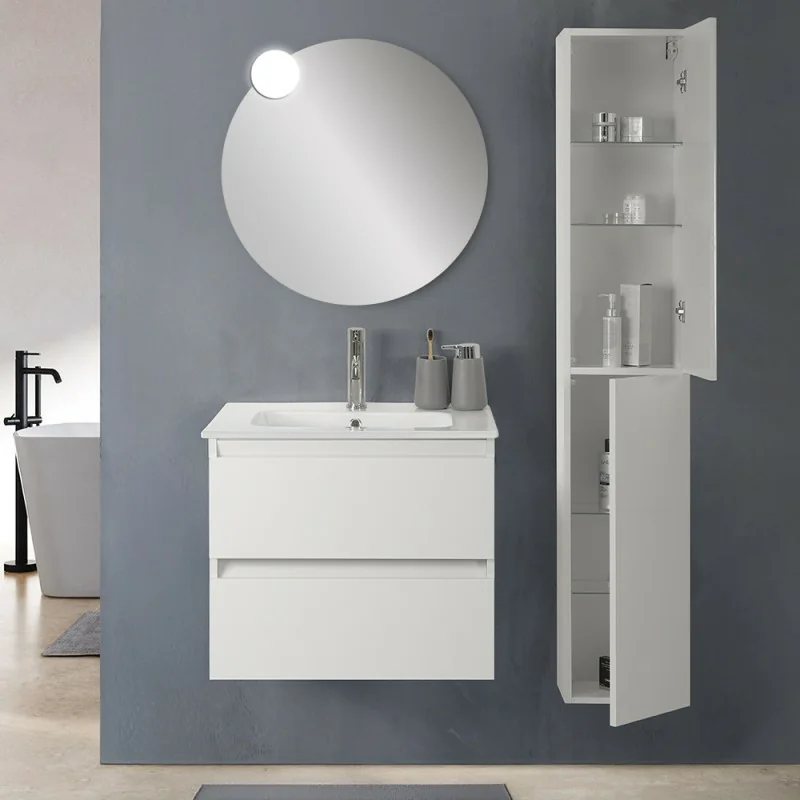 La linea Leda racchiude tutta l’eleganza e la praticità dei mobili sospesi, pensati per chi ama l’essenzialità e lo stile moderno senza rinunciare alla qualità. Questo pensile da bagno è realizzato in resistente legno nobilitato con una raffinata finitura bianca lucida, perfetta per ambienti dallo stile fresco, contemporaneo e minimal. Il mobile è dotato di 2 ante reversibili con apertura push-pull senza maniglie che separano i due vani e di 4 ripiani interni in vetro regolabili in altezza.