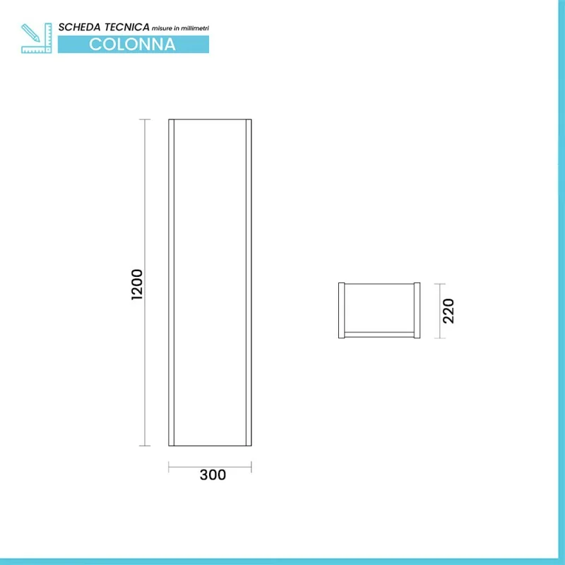 • Dimensioni: L 30 x p 22 x H 120 cm;