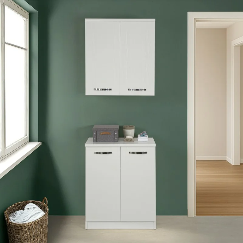 Pensile multiuso 70x77cm in legno bianco salvaspazio 2 ante linea Pilar
