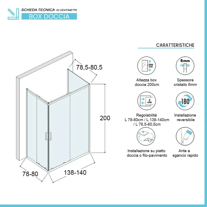 Box doccia 3 lati 80x140x80 cm caratteristiche tecniche: