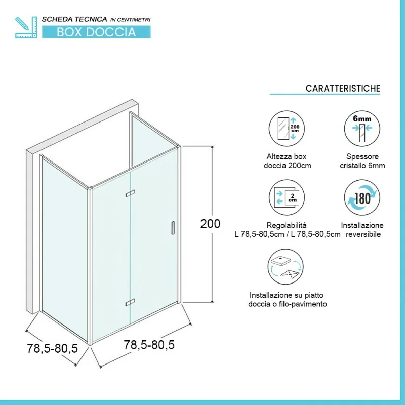 Box doccia 3 lati 80x80x80 cm caratteristiche tecniche: