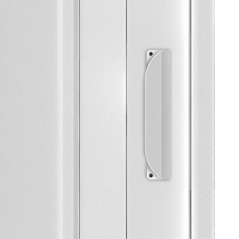 Realizzata in resistente PVC bianco, questa cabina doccia si integra con armonia in ogni stile di arredamento, garantendo durata nel tempo e facilità di pulizia. L'altezza standard di 185 cm assicura una protezione efficace dagli schizzi, mentre la sua caratteristica più innovativa è la riducibilità attraverso il taglio del binario di scorrimento. Questo permette di adattare la cabina doccia a misure inferiori, offrendo una flessibilità senza pari in fase di installazione.
