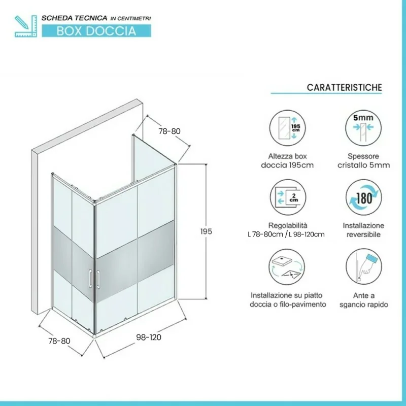 Box doccia 80x120x80 – caratteristiche tecniche: