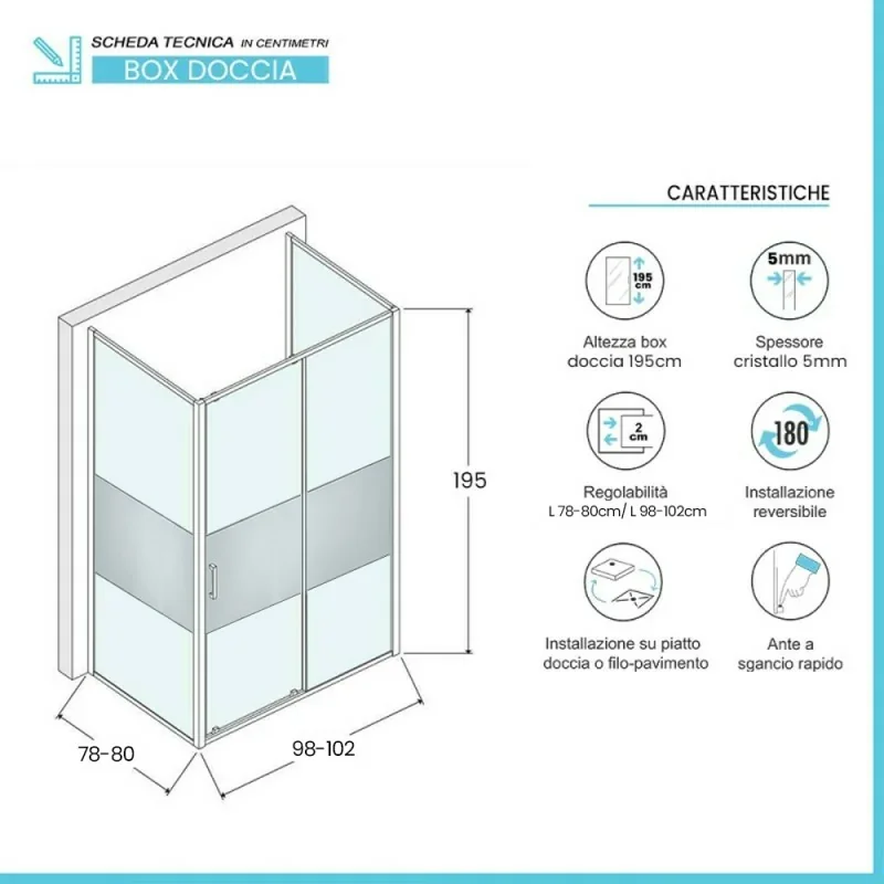 Box doccia 80x100x80 – caratteristiche tecniche: