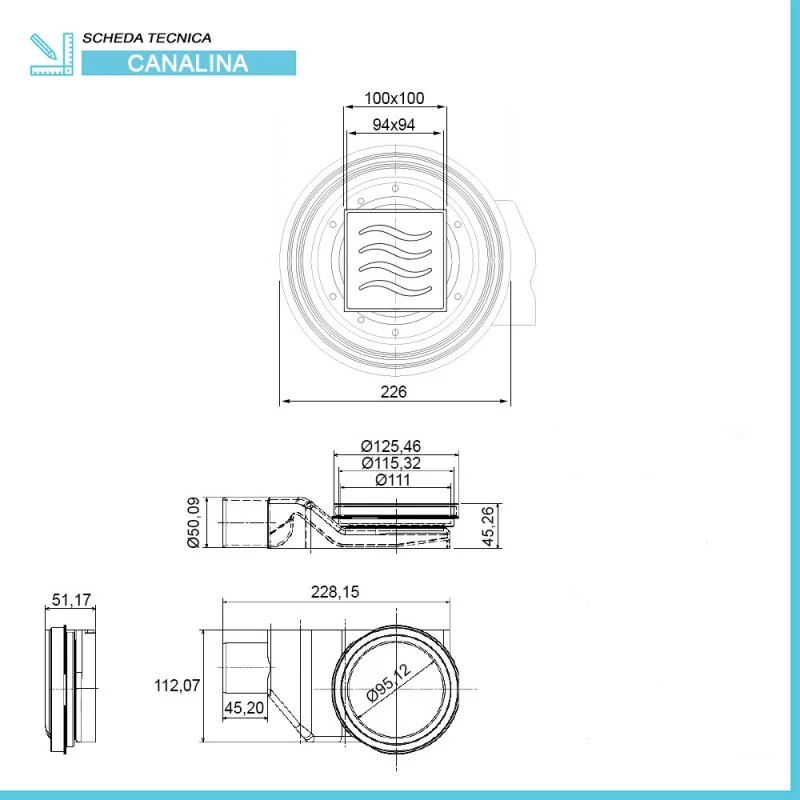 • Tipologia:scarico doccia a pavimento con griglia e sifone;
