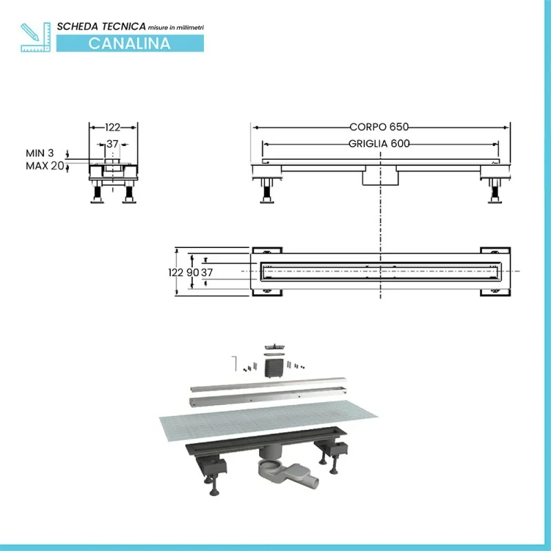 Canalina doccia 60 cm in alluminio reversibile scarico centrale, sifone e piletta inclusi Scheda tecnica Canalina doccia 60 cm in alluminio reversibile scarico centrale, sifone e piletta inclusi Scheda tecnica Canalina doccia 60 cm in alluminio reversibile scarico centrale, sifone e piletta inclusi Canalina doccia 60 cm in alluminio reversibile scarico centrale, sifone e piletta inclusi