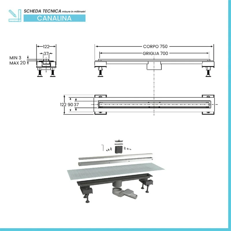 Canalina doccia 70 cm in alluminio reversibile scarico centrale, sifone e piletta inclusi Scheda tecnica Canalina doccia 70 cm in alluminio reversibile scarico centrale, sifone e piletta inclusi Scheda tecnica Canalina doccia 70 cm in alluminio reversibile scarico centrale, sifone e piletta inclusi Canalina doccia 70 cm in alluminio reversibile scarico centrale, sifone e piletta inclusi