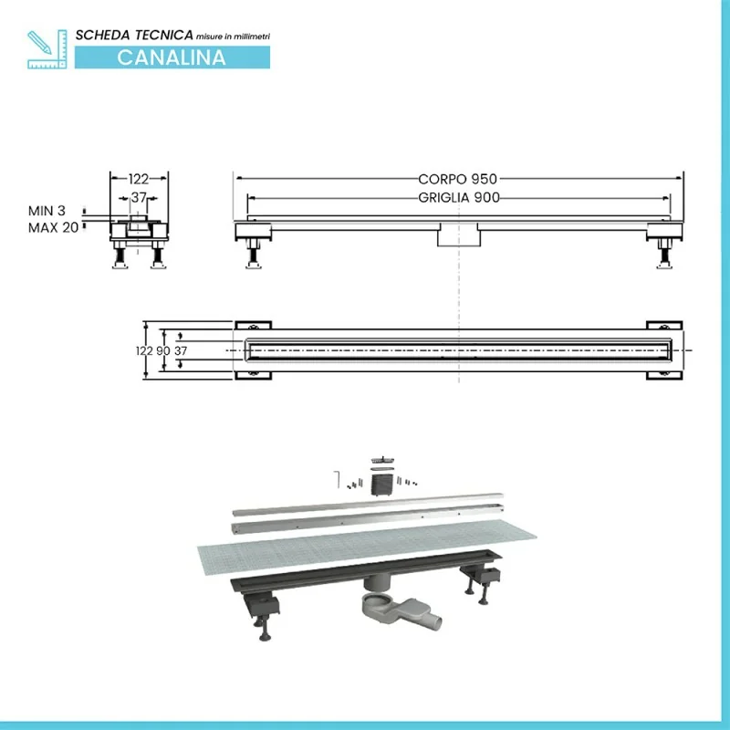 Canalina doccia 90 cm in alluminio reversibile scarico centrale, sifone e piletta inclusi Scheda tecnica Canalina doccia 90 cm in alluminio reversibile scarico centrale, sifone e piletta inclusi Scheda tecnica Canalina doccia 90 cm in alluminio reversibile scarico centrale, sifone e piletta inclusi Canalina doccia 90 cm in alluminio reversibile scarico centrale, sifone e piletta inclusi