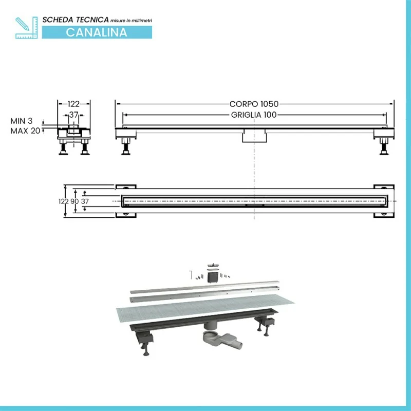 Canalina doccia 100 cm in alluminio reversibile scarico centrale, sifone e piletta inclusi Scheda tecnica Canalina doccia 100 cm in alluminio reversibile scarico centrale, sifone e piletta inclusi Scheda tecnica Canalina doccia 100 cm in alluminio reversibile scarico centrale, sifone e piletta inclusi Canalina doccia 100 cm in alluminio reversibile scarico centrale, sifone e piletta inclusi