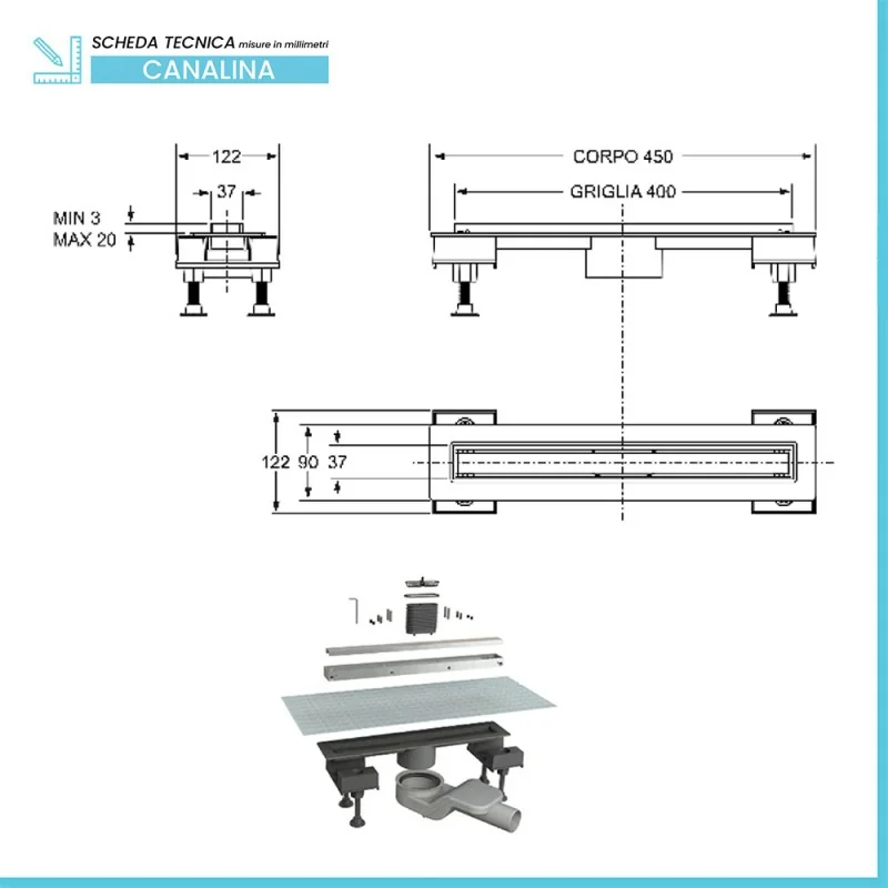 Canalina doccia 40 cm in alluminio reversibile scarico centrale, sifone e piletta inclusi Scheda tecnica Canalina doccia 40 cm in alluminio reversibile scarico centrale, sifone e piletta inclusi Scheda tecnica Canalina doccia 40 cm in alluminio reversibile scarico centrale, sifone e piletta inclusi Canalina doccia 40 cm in alluminio reversibile scarico centrale, sifone e piletta inclusi