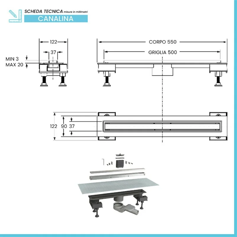 Canalina doccia 50 cm in alluminio reversibile scarico centrale, sifone e piletta inclusi Scheda tecnica Canalina doccia 50 cm in alluminio reversibile scarico centrale, sifone e piletta inclusi Scheda tecnica Canalina doccia 50 cm in alluminio reversibile scarico centrale, sifone e piletta inclusi Canalina doccia 50 cm in alluminio reversibile scarico centrale, sifone e piletta inclusi