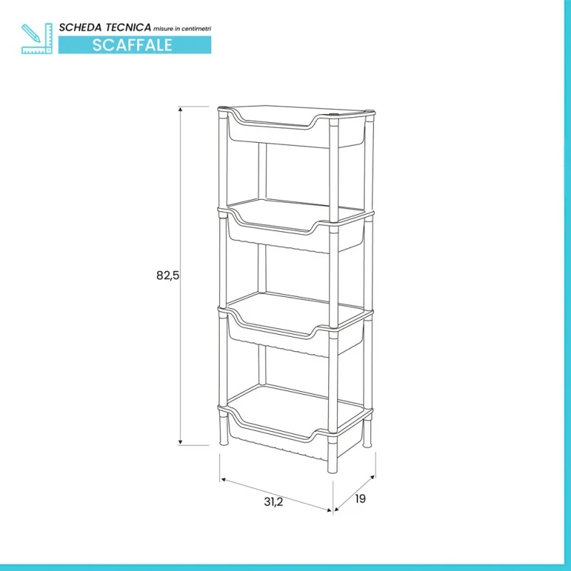 Il kit di montaggio è facile e intuitivo,permettendoti di assemblare il contenitore in pochi minuti. La struttura solida e robusta garantisce stabilità e durata nel tempo. I 4 ripiani offrono la massima flessibilità per adattare il contenitore alle tue esigenze. Realizzato in plastica di alta qualità,è facile da pulire e resistente all'umidità,ideale per ambienti come la cucina e il bagno.