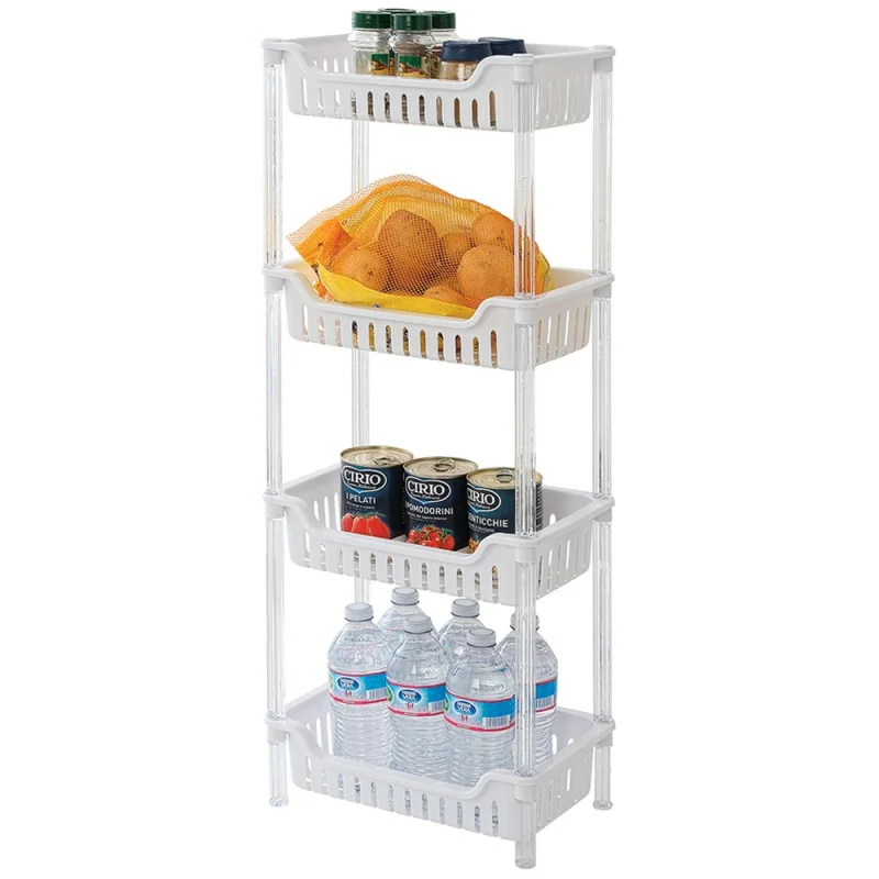 Scaffale portaoggetti per la casa in plastica bianca con 4 ripiani