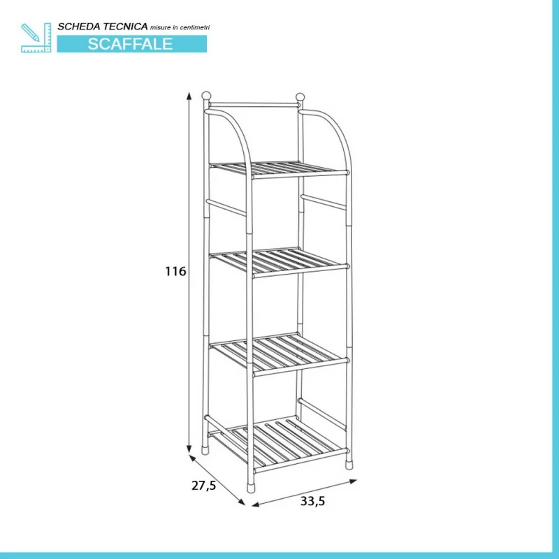 Lo scaffale bagno proposto è un complemento d’arredo ideale,comodo,versatile e salvaspazio,dal design semplice ma molto elegante. Può essere utilizzato per tenere ordinato il bagno ma anche per raccogliere riviste o decorare la zona giorno con piante e soprammobili.