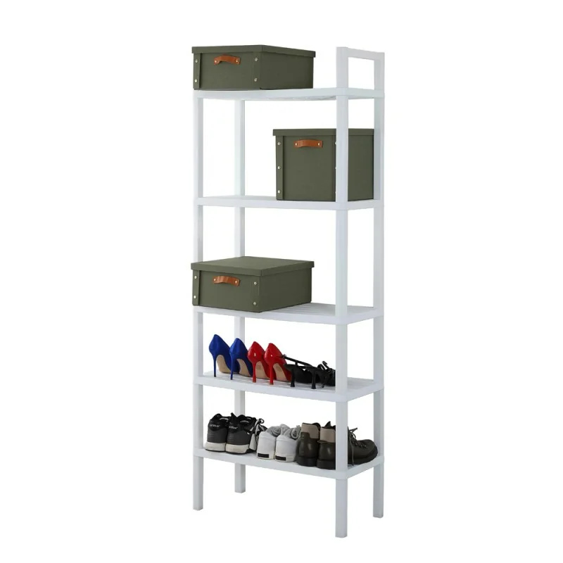 Scaffale multiuso in plastica bianco effetto legno con 5 ripiani e in kit da montaggio