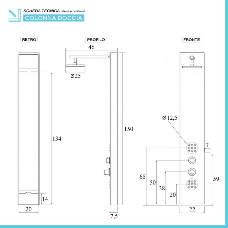 • Dimensioni massime: L 22 x P 46 x H 150 cm