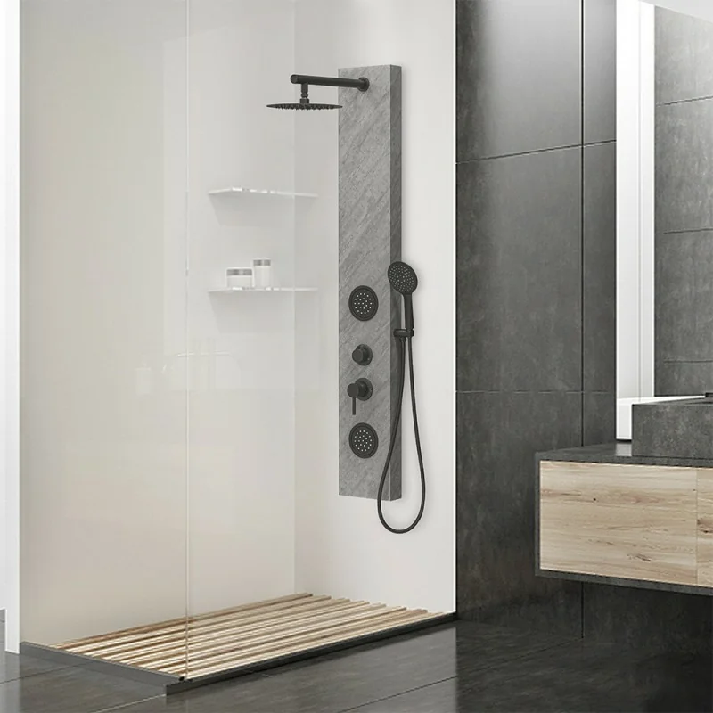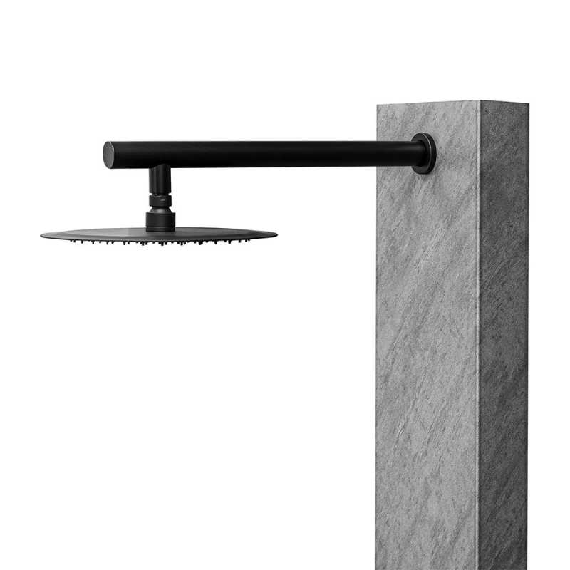 Pannello doccia in acciaio inox effetto pietra con soffione slim nero opaco