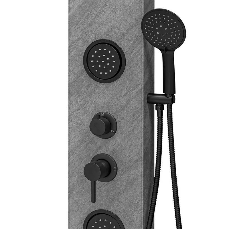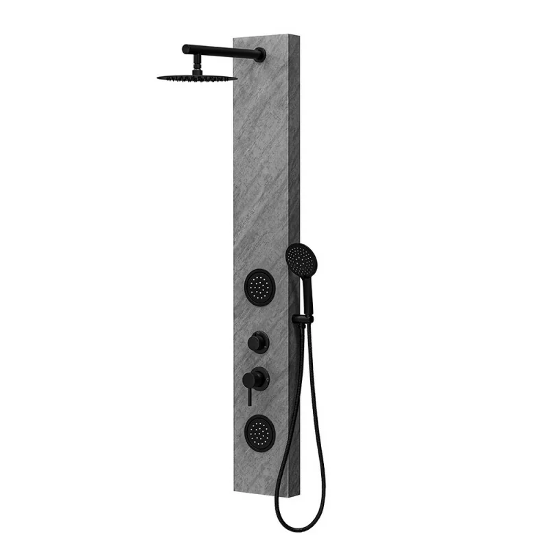 Pannello doccia in acciaio INOX effetto pietra con soffione,doccino e miscelatore nero opaco