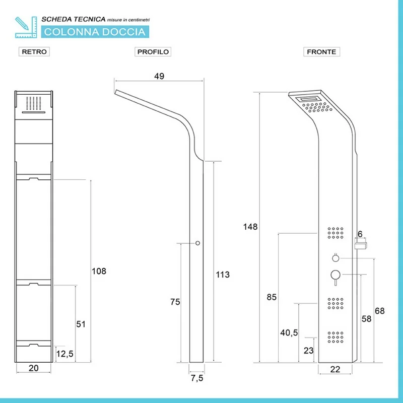 Pannello doccia idromassaggio caratteristiche tecniche: