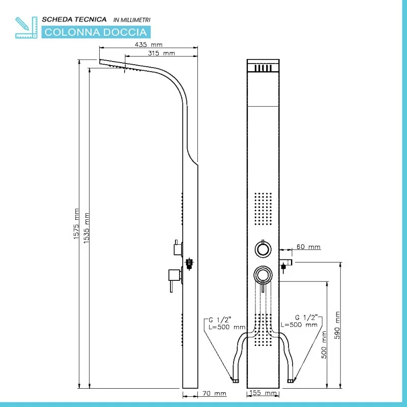 • Dimensioni:L 15 x p 43,5 x H 157,5 cm;