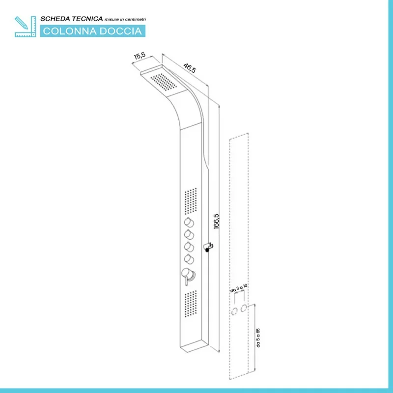 Pannello doccia multifunzione caratteristiche tecniche: