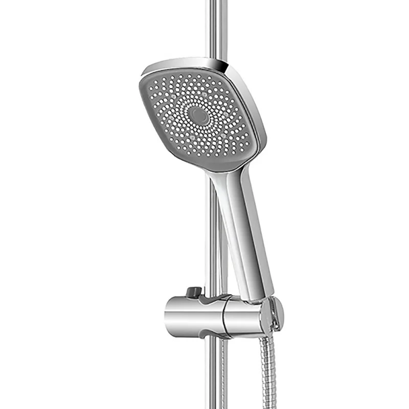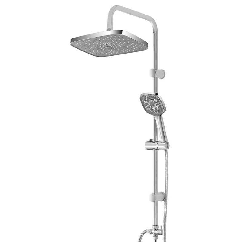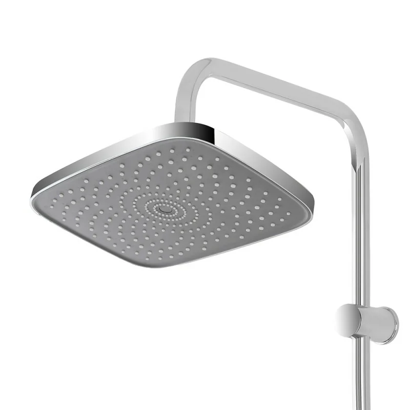 La colonna doccia ha interasse regolabile,per un’installazione a parete del tutto personale;è completa di soffione rettangolare anticalcare,doccetta monogetto,flessibile in acciaio con doppia aggraffatura e deviatore in ottone.