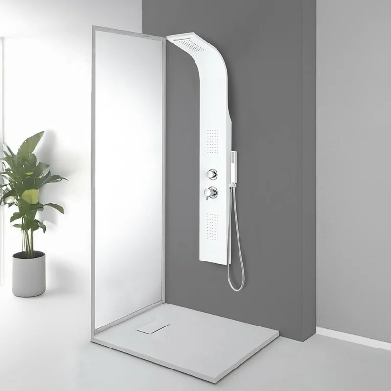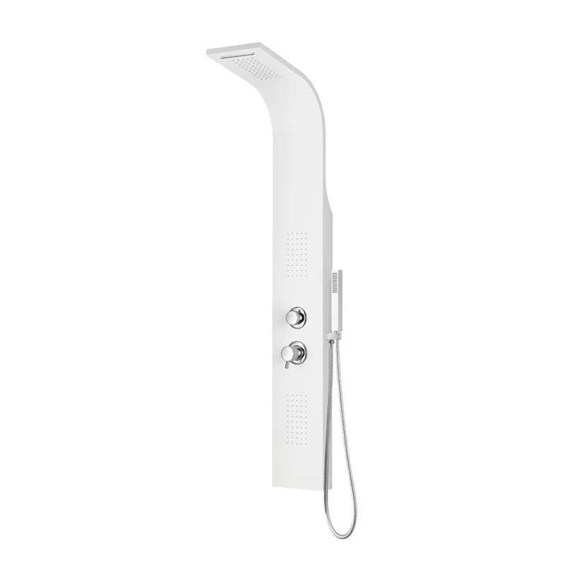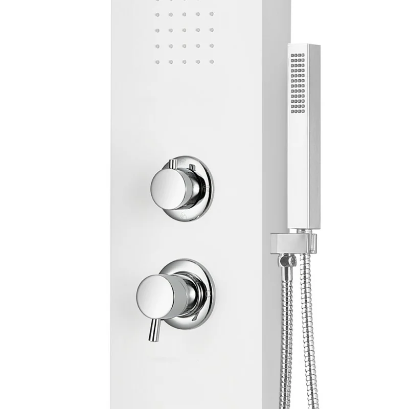 Colonna doccia idromassaggio in alluminio bianco opaco con 4 getti Pannello doccia idromassaggio in alluminio bianco opaco con 4 getti Scheda tecnica Colonna doccia idromassaggio in alluminio bianco opaco con 4 getti Caratteristiche e funzionalità Colonna doccia idromassaggio in alluminio bianco opaco con 4 getti Doccino del pannello doccia idromassaggio in alluminio bianco opaco con 4 getti Soffione della Colonna doccia idromassaggio in alluminio bianco opaco con 4 getti