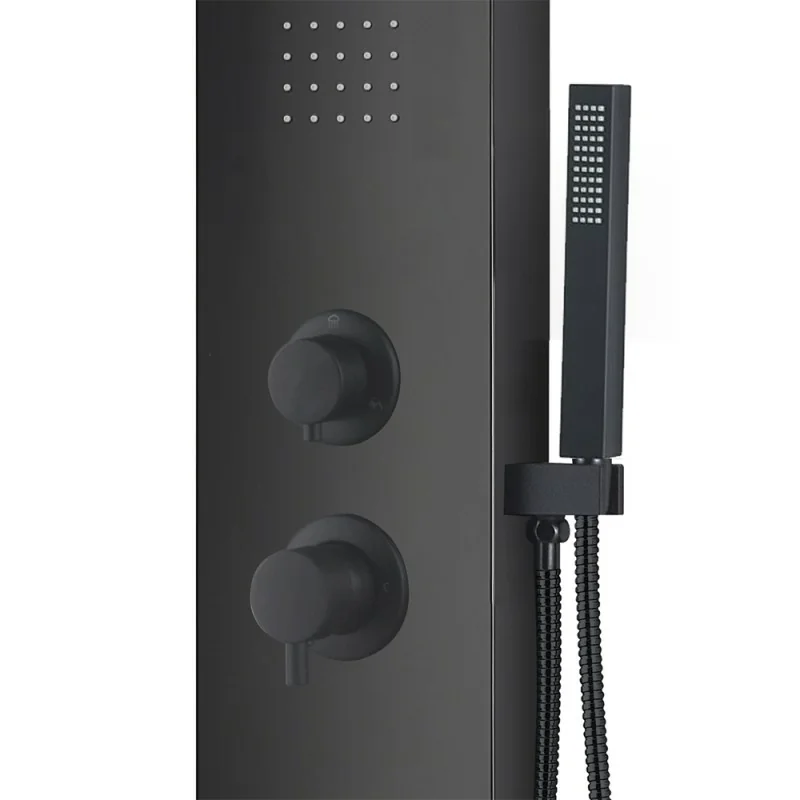 Pannello doccia idromassaggio in alluminio nero opaco con 4 getti Colonna doccia idromassaggio in alluminio nero opaco con 4 getti Scheda tecnica Pannello doccia idromassaggio in alluminio nero opaco con 4 getti Funzionalità e caratteristiche Pannello doccia idromassaggio in alluminio nero opaco con 4 getti Doccetta Colonna doccia idromassaggio in alluminio nero opaco con 4 getti Soffione del Pannello doccia idromassaggio in alluminio nero opaco con 4 getti