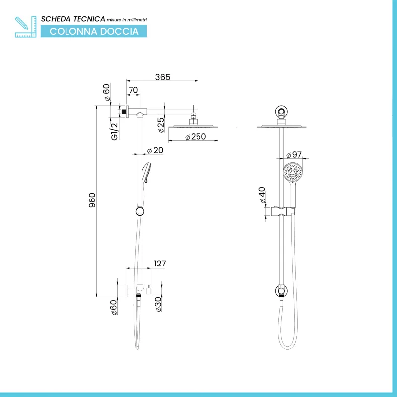 Colonna doccia da 96 cm in ottone cromato design tondo e doccetta con presa d’acqua in alto Scheda tecnica Colonna doccia da 96 cm in ottone cromato design tondo e doccetta con presa d’acqua in alto Colonna doccia da 96 cm in ottone cromato design tondo e doccetta con presa d’acqua in alto