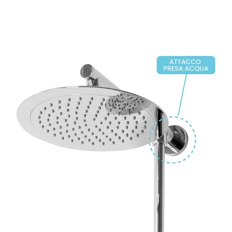 Eleva l'esperienza della doccia con la nostra colonna doccia da 96 cm, un perfetto connubio di stile e funzionalità. Realizzata in ottone cromato di alta qualità, non solo garantisce una durata eccezionale e una lucentezza che resiste nel tempo, ma aggiunge anche un tocco di eleganza contemporanea al tuo bagno. Goditi un getto ampio e avvolgente grazie al soffione tondo, progettato per regalarti momenti di relax. Ma la vera innovazione risiede nella doccetta con presa d'acqua superiore. Questa caratteristica distintiva non è solo un dettaglio di design, ma una soluzione pratica e intelligente. A differenza delle tradizionali doccette che spesso hanno l'attacco dell'acqua in basso, la nostra presa superiore offre una maggiore libertà di movimento e riduce l'ingombro del tubo. Questo significa meno torsioni, più ergonomia e una pulizia visiva impeccabile per una cabina doccia sempre ordinata e funzionale.