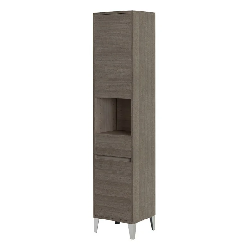 Colonna bagno portasciugamani da terra L. 40 cm in rovere scuro linea Way 2 ante e 1 cassetto con vano a giorno