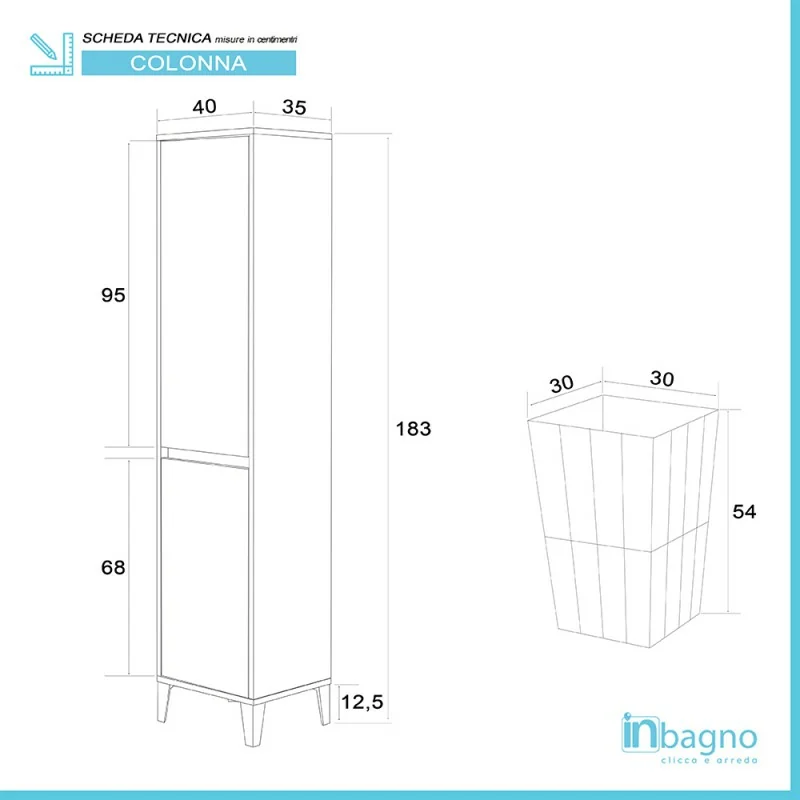 • Dimensioni:L.40 x H.183 x P. 35 cm;