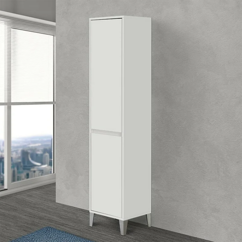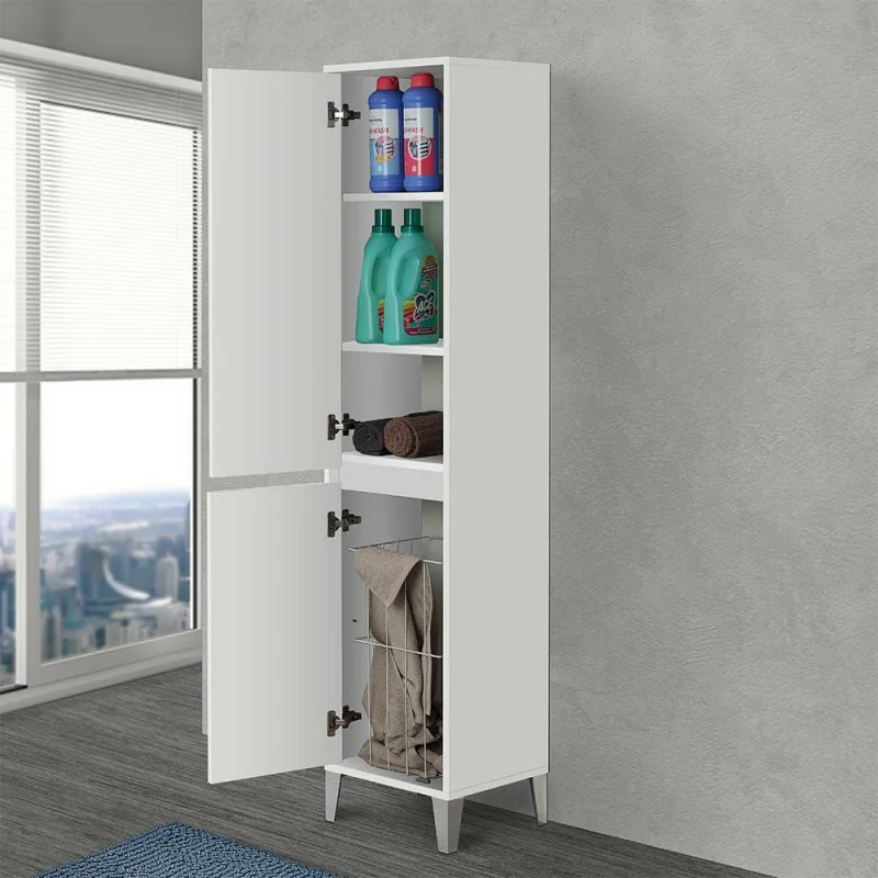 La colonna portabiancheria apporta un profondo valore aggiunto al proprio arredo bagno,donandogli maggiore spazio a disposizione per la propria oggettistica e un vano ad hoc dove riporre comodamente tutta la propria biancheria sporca. Il pensile è realizzato in legno melaminico dallo spessore di 18 mm,altamente resistente ad urti e impatti,con innovativa superficie antigraffio. L'armadio bagno è composto da 2 ante ad installazione reversibile con chiusura ammortizzata soft close,utile ad ammortizzare l'effetto sortito da colpi accidentali,e sistema di apertura a gola con maniglie integrate direttamente sul frontale del mobile. Sono inoltre presenti 2 ripiani interni regolabili,posizionabili liberamente in base ad ogni esigenza e bisogno.