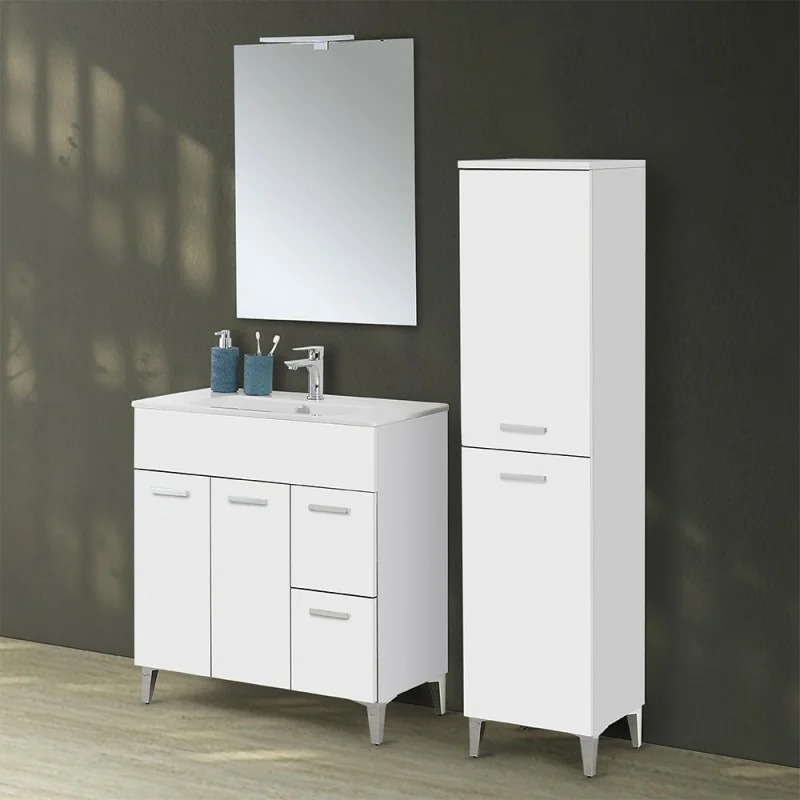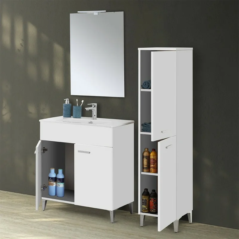 La colonna bagno,in bianco lucido comoda e funzionale, è composta da due ante con maniglie in finitura cromata;l’interno prevede uno scomparto per ogni anta con ripiano removibile.