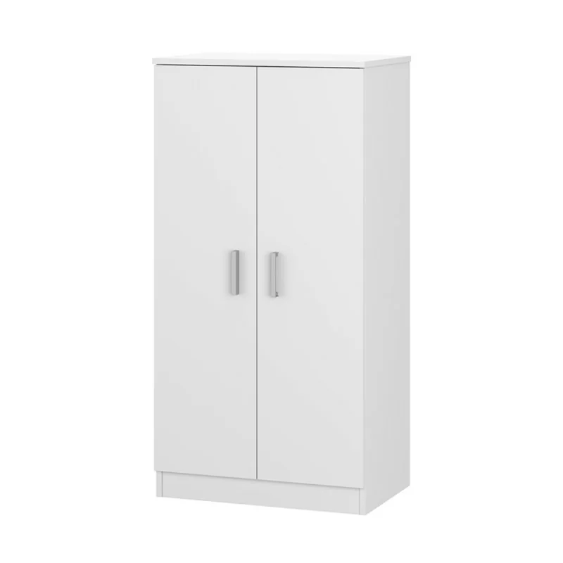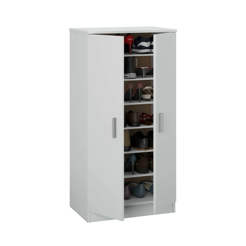 Mobile scarpiera H 108 cm bianco in legno con 2 ante e 6 ripiani