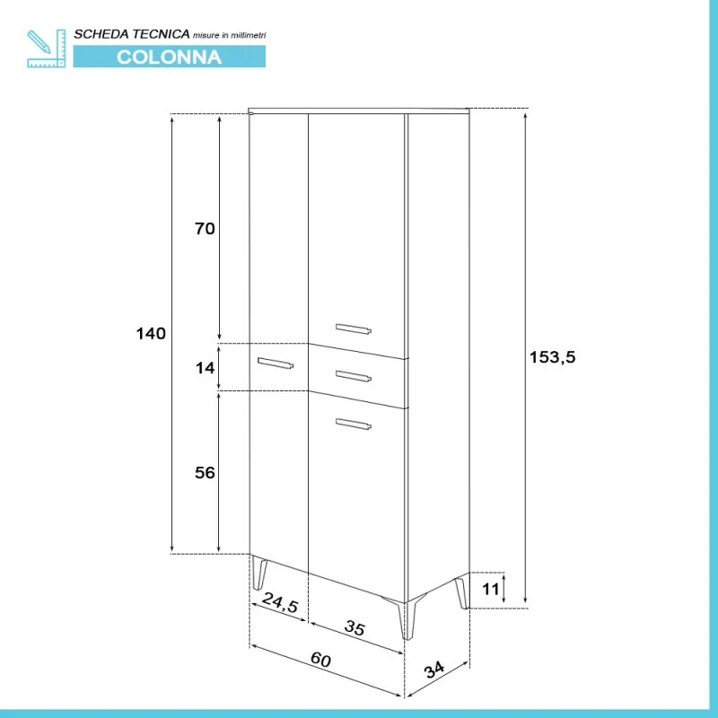 Colonna bagno d’appoggio H 153,5 cm caratteristiche tecniche: