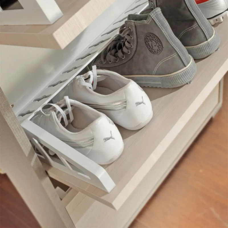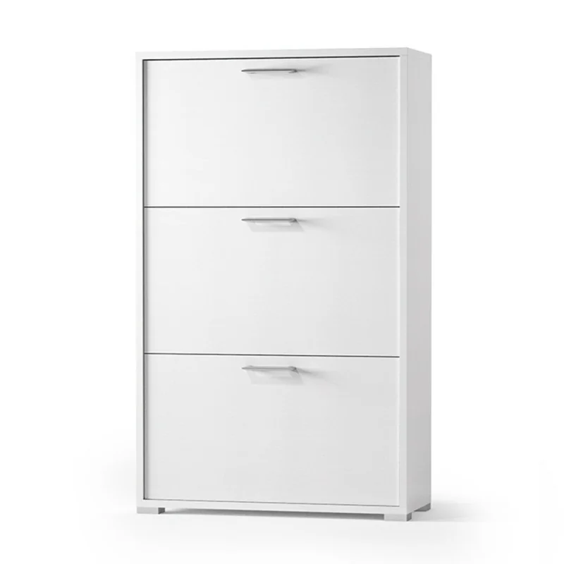Scarpiera salvaspazio con tre ante a ribalta in legno bianco in kit di montaggio