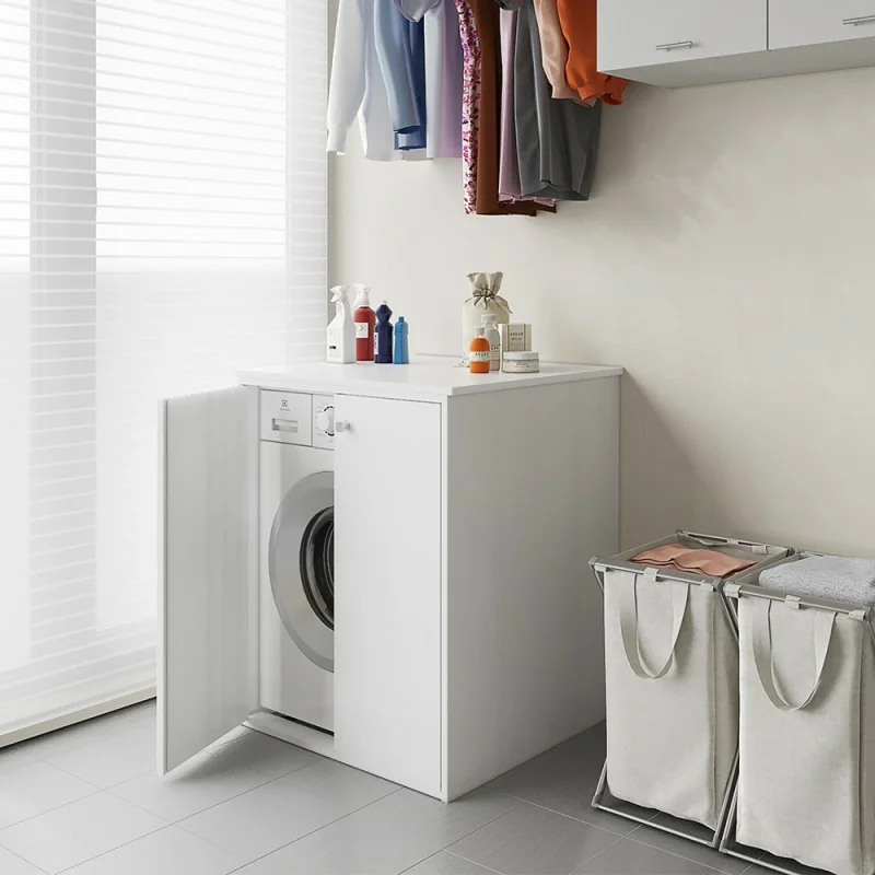 Uno dei mobili più apprezzati per dimensioni compatte e comode,il copri lavatrice proposto è dotato di due ante a chiusura magnetica, piedini regolabili in altezza 15 mm e comodo accesso per la pulizia del filtro della lavatrice.