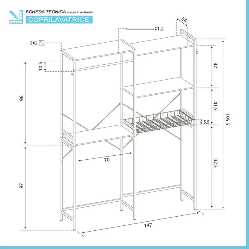 Scaffale sopra lavatrice caratteristiche tecniche:
