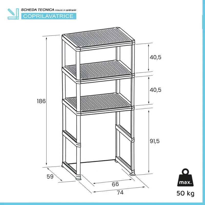 Scaffale sopra lavatrice caratteristiche tecniche: