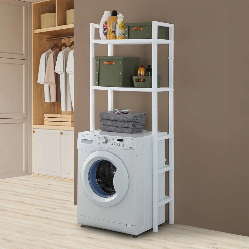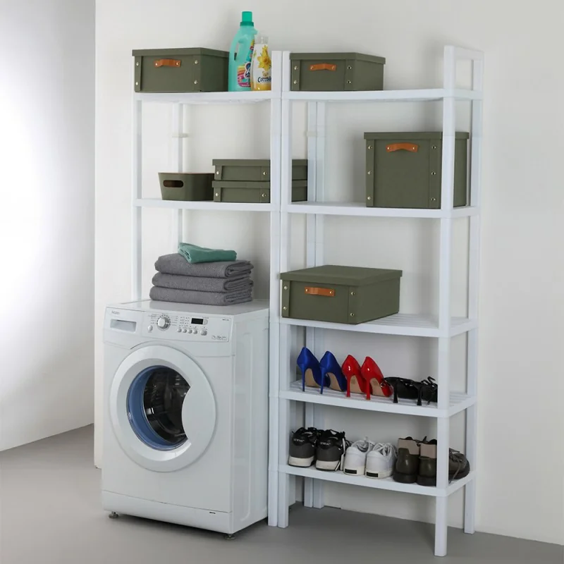 Scaffale sopra lavatrice in plastica bianco con 2 ripiani in kit di montaggio